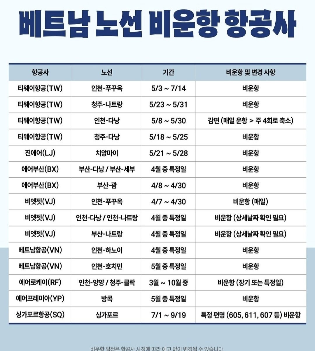 < 목록으로 베트남 노선 비운항 항공사 총정리 1 애시 2026.03.25 추천 0 조회수 15 댓글 2 신고 후 차단 차단 해제 공유 목록으로 공유 추천 댓글 작성 1 쪽지 보내기 너의 오 땡큐배리머치! 오 땡큐배리머치! 수정 11시간전 답글 추천 (0) 답글 1 쪽지 보내기 국깡이 감사합니다! 감사합니다! 수정 10시간전 답글 추천 (0) 답글 자유 게시판 번호 제목 작성자 날짜 조회수 1207 비행기 상승된 가격 평균 총정리 N M 로얄 관리자 2026.03.25 20 1206 다낭 BMW 가라오케 솔직후기 N 1 국깡이 2026.03.25 26 1205 언제 봐도 질리지 않는 뷰 N 1 너의 2026.03.25 15 1204 베트남 노선 비운항 항공사 총정리 N + 2 1 애시 2026.03.25 15 1202 ✈️ 다낭행 하늘길 흔들... 항공유 폭등 여파로 항공편 대거 취소 N M 로얄 관리자 2026.03.25 13 1201 길거리 직화 닭발 도전!~ + 1 1 초존도초 2026.03.24 18 1200 여기가 되게 투명한거로 유명하다고 들었습니다. 정보 많이 얻어 가겠습니다. + 1 1 말랭 2026.03.24 32 1196 🚶♂️ 다낭, 인도 상업활동 전면 금지… “보행자 중심 도시” 전환 본격화 + 1 M 로얄 관리자 2026.03.24 23 1194 🎼 3월 29일 다낭 한강변 대형 야외 콘서트 개최 M 로얄 관리자 2026.03.20 46 1192 다낭 밤문화 여행 솔직 후기 + 4 1 김갑돌 2026.03.19 196 1191 다낭 클럽 가는 애들 특징ㅋㅋ + 2 1 너의 2026.03.19 141 1189 🚨 다낭, 불법 드론 단속 강화... 항공 안전 위협에 강력 대응 M 로얄 관리자 2026.03.19 38 1188 다낭에서 돈 쓰는 속도 이거 정상임?ㅋㅋ + 2 1 BlueSky34 2026.03.19 152 1187 다낭에서 만난 한국형.. 이건 좀 충격이었음 + 2 1 woaekd 2026.03.19 146 1185 지하철 No 약자석 + 1 1 못댄네 2026.03.18 46 작성 1 2 3 4 5 >