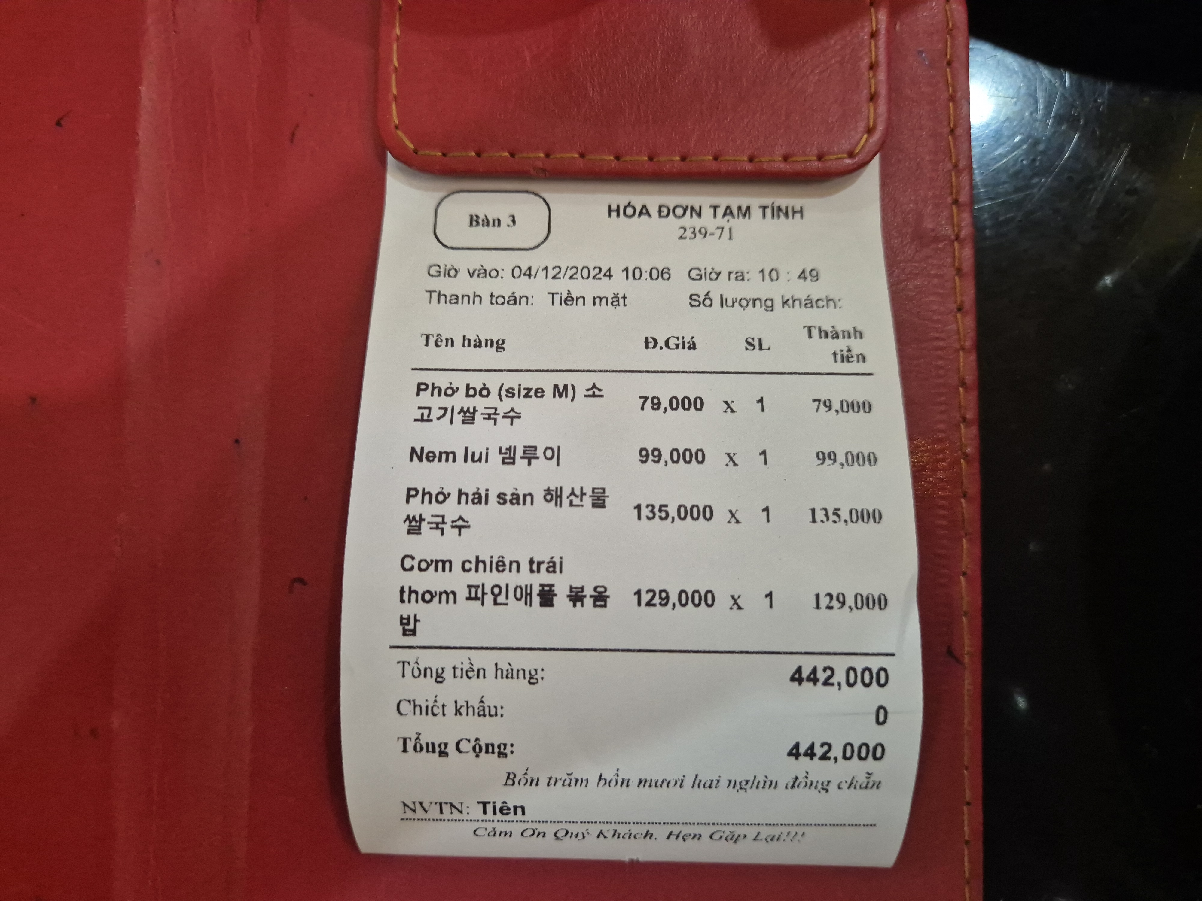메뉴판은 한국어로 잘 안내되어 있어